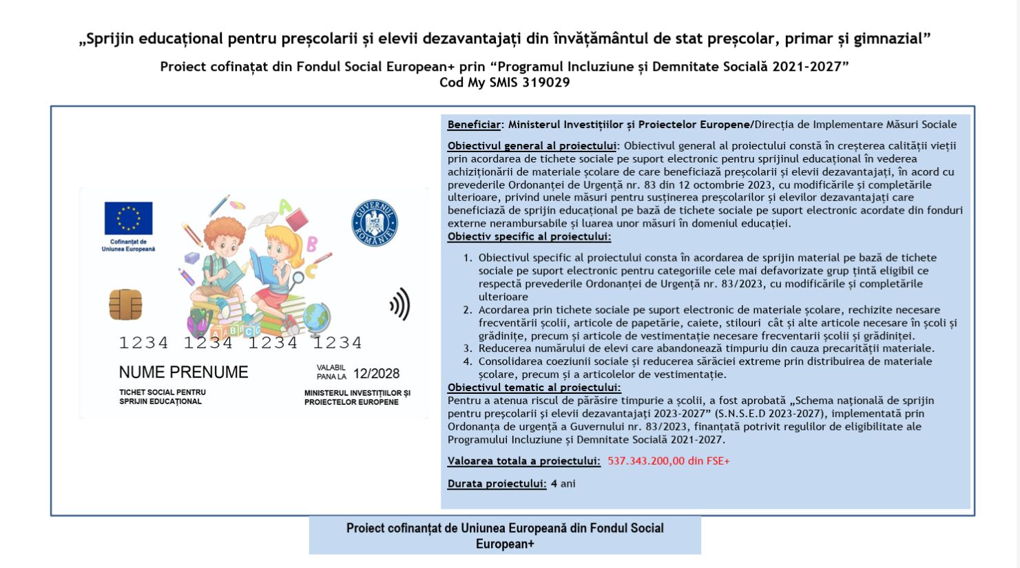 Informații cu privire la sprijinul educațional pe bază de tichete sociale pe suport electronic.